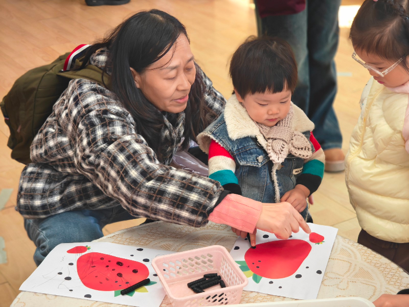 亲子互动环节超吸睛!“珍珠奶茶真好喝”“小鱼吐泡泡”等趣味游戏前,宝贝们踮着小脚专注操作,时不时举起完成的“作品”向家长炫耀,家长们耐心引导、轻声鼓励,沉浸式享受专属亲子时光~