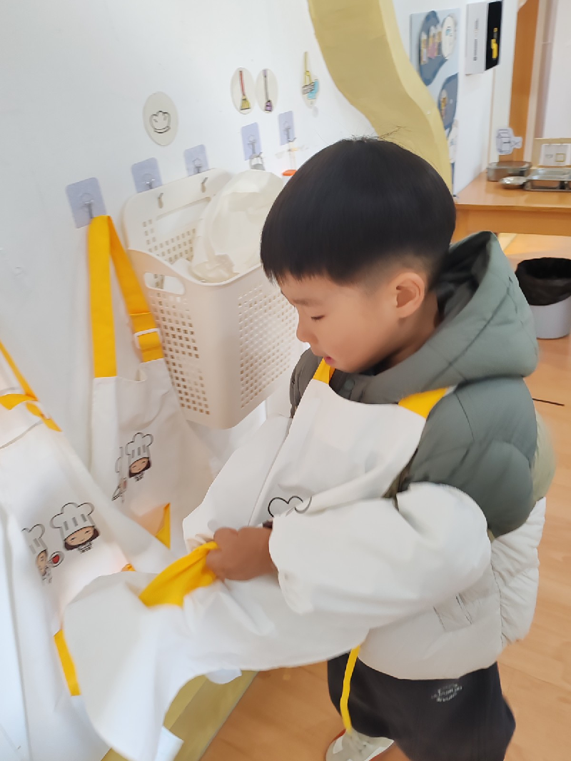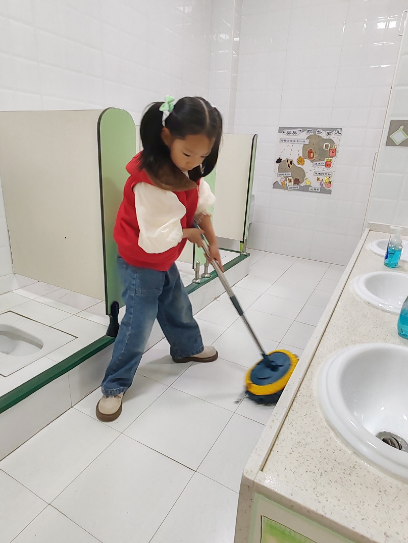 从底楼的小1班到三楼的大班班级,各年龄段幼儿自主开展生活实践,一个个"生活小管家"就位开始自我服务以及值日生工作,通过创设真实的生活情境,孩子们在亲身体验中习得生活技能,培养自主意识与责任担当。